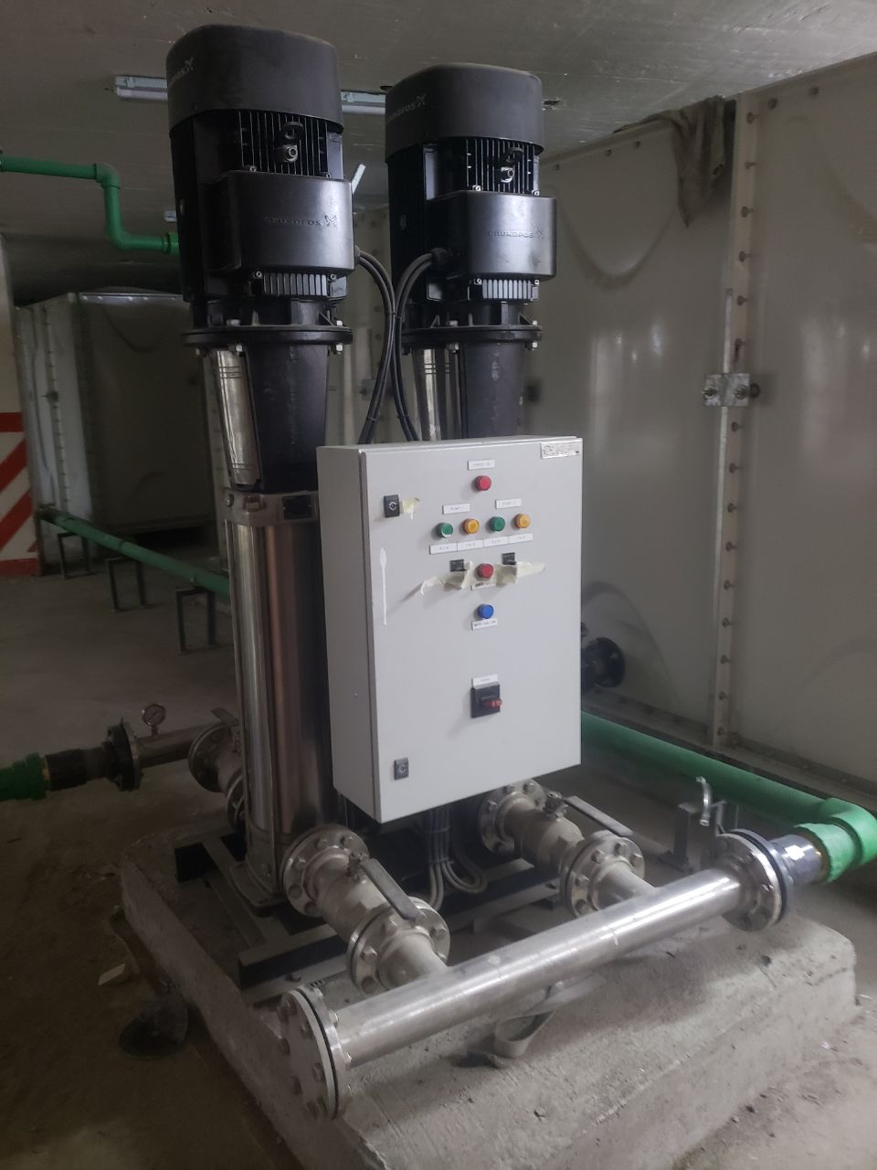 - Two or More Vertical Multistage/Horizontal Single Stage Booster Pumps: These pumps are designed to increase water pressure and ensure continuous flow.